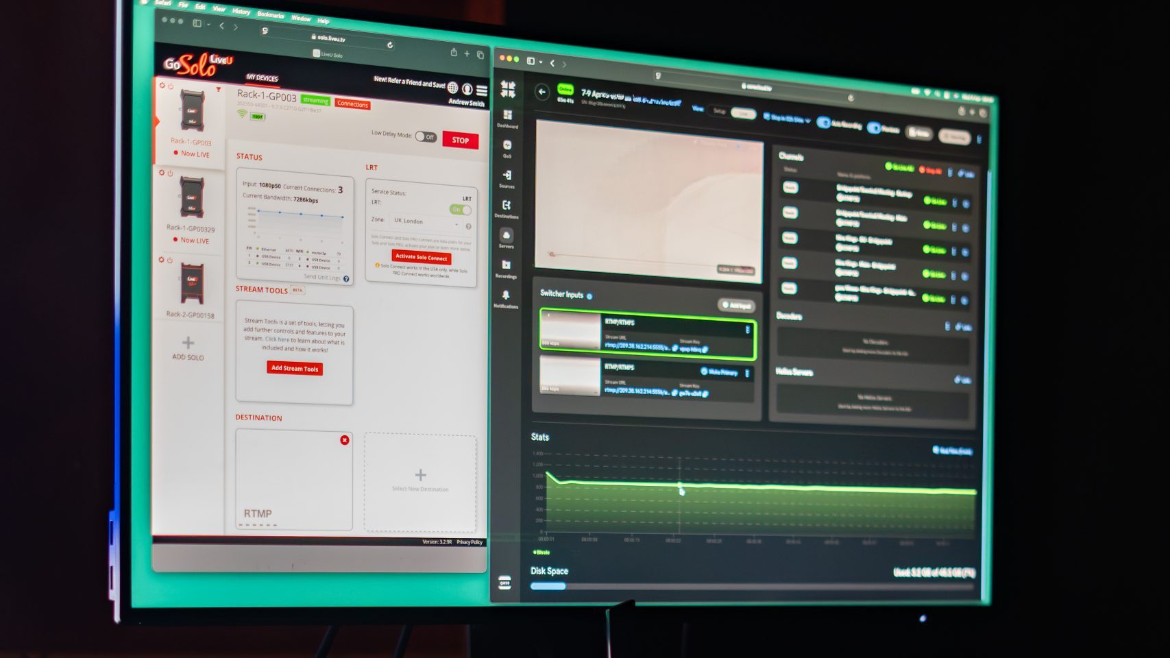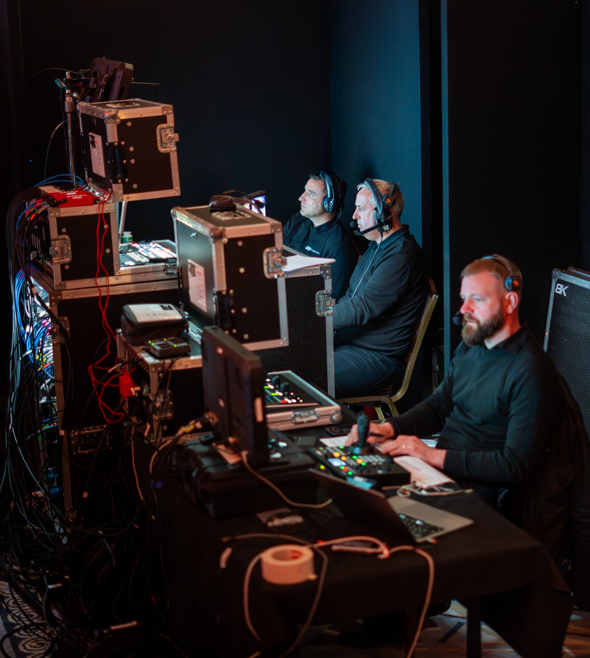 Both rooms were operated as full three-camera vision-mixed studios — adapted to suit the layout of each space. The live programme included camera feeds, branded slides, VT playback and synced programme audio. Because we built redundancy into the system using dual encoders, bonded networks and cloud switching, delivery remained uninterrupted throughout the event.